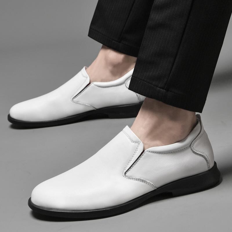 ローファー メンズ ビジネス フォーマル 牛革 革靴 カジュアルシューズ 夏用 通気性 ポインテッドトゥ 低めヒール チャンキーヒール 結婚式 新郎 ウェディング 英国風 韓国風 増高効果 紳士靴 通勤 普段使い ブラック ホワイト