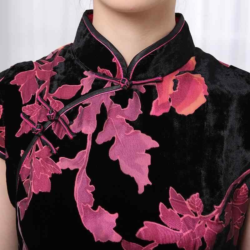 チャイナドレス ミセス レディース 半袖 ミドル丈 中国風 斜め襟 シルク 結婚式 披露宴 謝恩会 パーティー フォーマル エレガント Aライン ワンピース 発表会 演奏会 春夏 レッド パープル