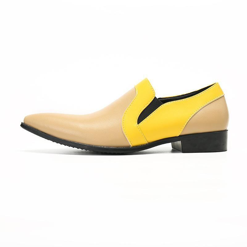 紳士靴 革靴 メンズ スリッポン ポインテッドトゥ ブローグ 本革 牛革 イエロー アプリコット ビジネス フォーマル ドレスシューズ 結婚式 パーティー 英国風 韓国風 通勤 普段使い 通気性 ゴム底 フラットヒール