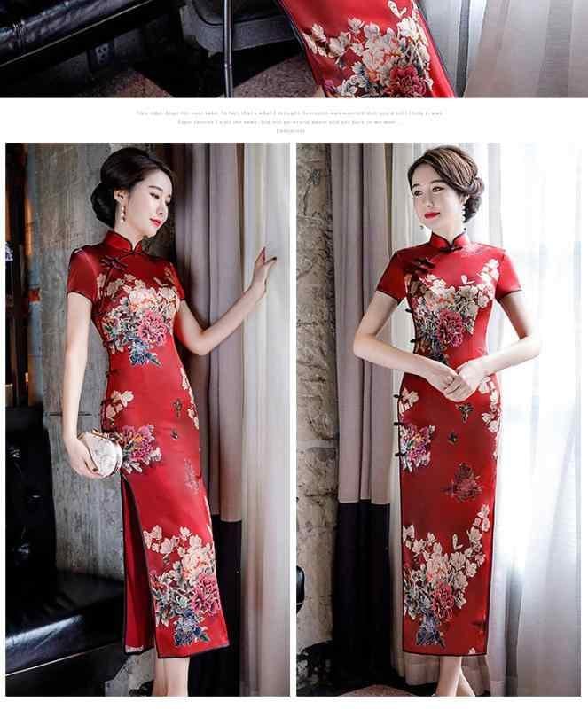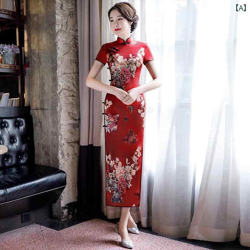 チャイナドレス レディース 春夏 改良 シルク 桑蚕シルク ロング丈 半襟 スタンドカラー 三分袖 高スリット エレガント スリム 細見え 上品 デイリー カジュアル