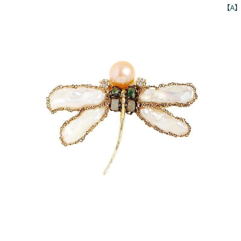 ブローチ レディース 韓国風 ファッション トンボ パール バロック調 マイクロパヴェ ラインストーン 真鍮 電気メッキ加工 アクセサリー 上品 エレガント 普段使い フォーマル 繊細 精巧