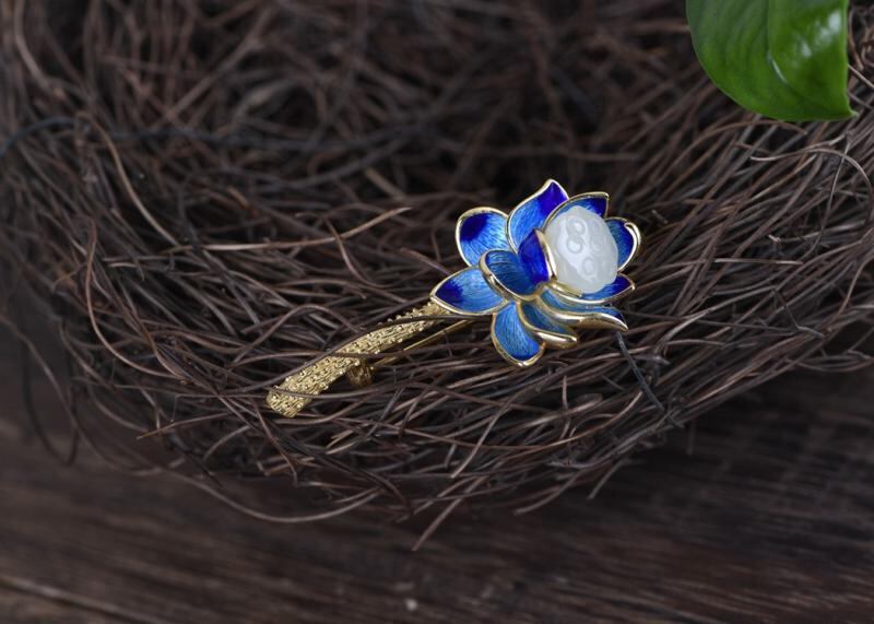 ブローチ レディース 925シルバー 和田玉 蓮の花 七宝焼 金メッキ ペンダントトップ 両用 上品 エレガント フェミニン 普段使い プレゼント