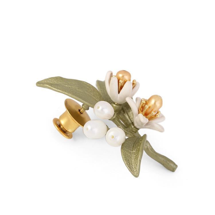 ブローチ レディース フラワーモチーフ ビターオレンジ スーツ ジャケット ラペルピン 襟ピン 高級感 エレガント 上品 オフィス カジュアル フォーマル 合金 ゴールド マグネット式 光沢 マット ファッション小物