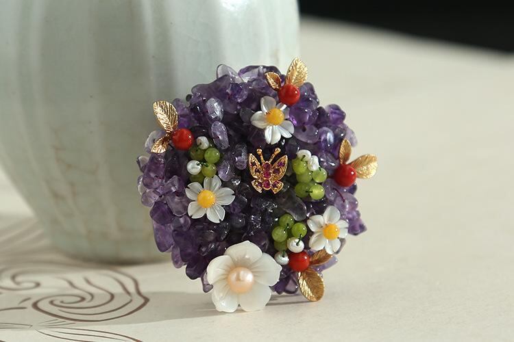 ブローチ レディース アメジスト クリスタル ラベンダー フラワー パープル ハンドメイド デザイン エレガント コート ジャケット アクセサリー