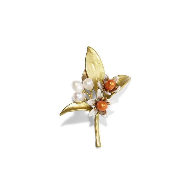 ブローチ レディース ビターオレンジの花 合金製 襟ピン スーツ ジャケット シャツ 襟飾り コサージュ 欧米風 ファッション小物 電気メッキ 光沢 装飾アクセサリー