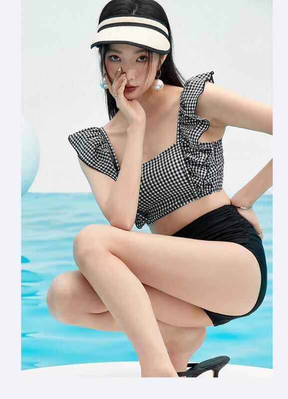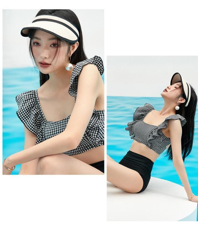 水着 レディース セパレート スイムウェア 女性用 セクシー 体型カバー 細見え スリムフィット 温泉 リゾート プール ビーチ 海水浴 無地 黒 ノンワイヤー 胸パッド入り ナイロン ポリエステル 夏 サマー