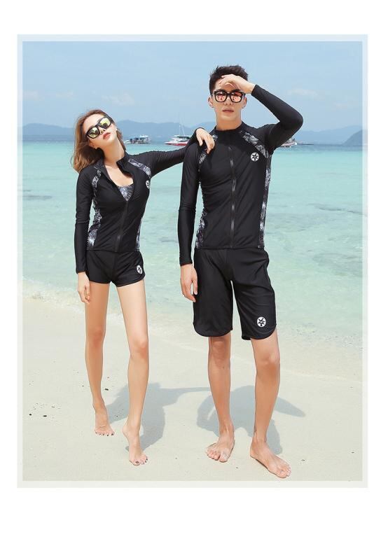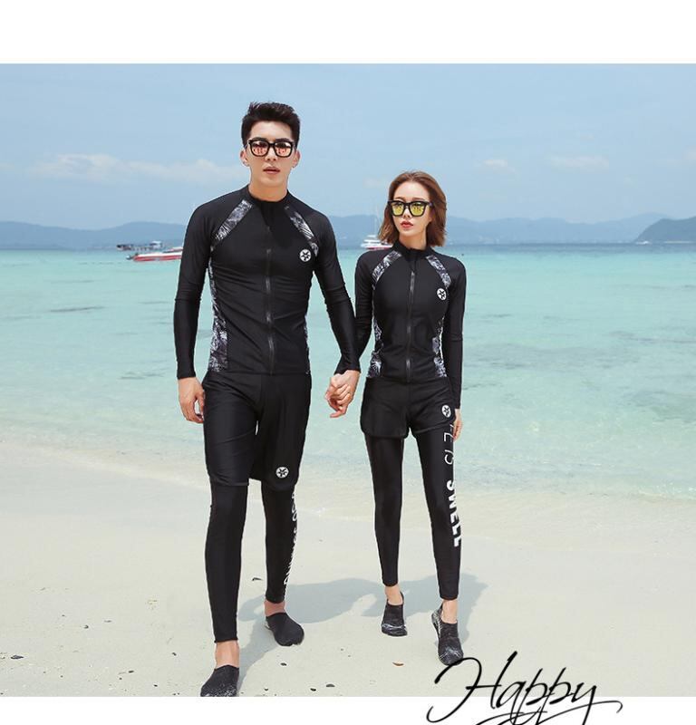 サーフスーツ ラッシュガード 男女兼用 カップル 長袖 ロングパンツ セパレート 水着 ジップアップ シュノーケリング サーフィン マリンスポーツ 海水浴 プール ナイロン 速乾 UVカット 胸パッド付き 無地