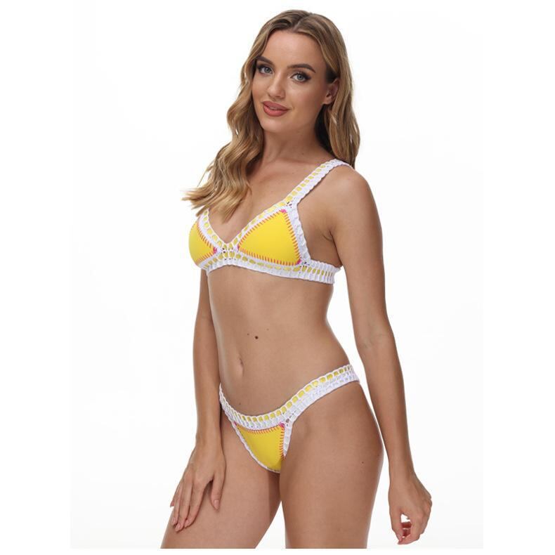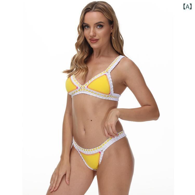 レディース 水着 セパレート ビキニ バックフック ノンワイヤー ノーパッド ストレッチ 伸縮性 ネオプレン 手編み セクシー プール ビーチ マリンスポーツ