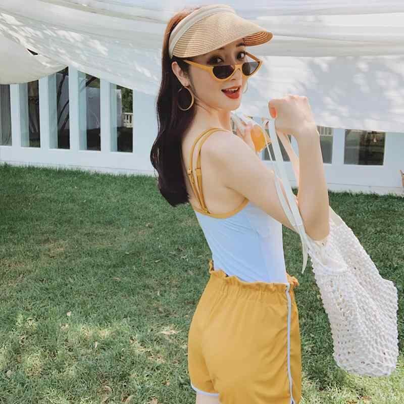 水着 レディース 韓国風 セパレート 体型カバー セクシー 温泉 プール 海水浴 無地 伸縮性 パッド付き ワイヤーなし シンプル 耐久性 ポリエステル ブルー 春夏