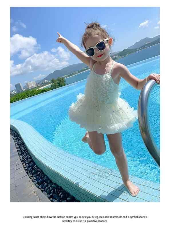 水着 キッズ 女の子 ベビー ワンピース UVカット ふんわり フリル プリンセス風 スパンコール キラキラ かわいい スカート一体型 ナイロン ポリエステル素材 春夏