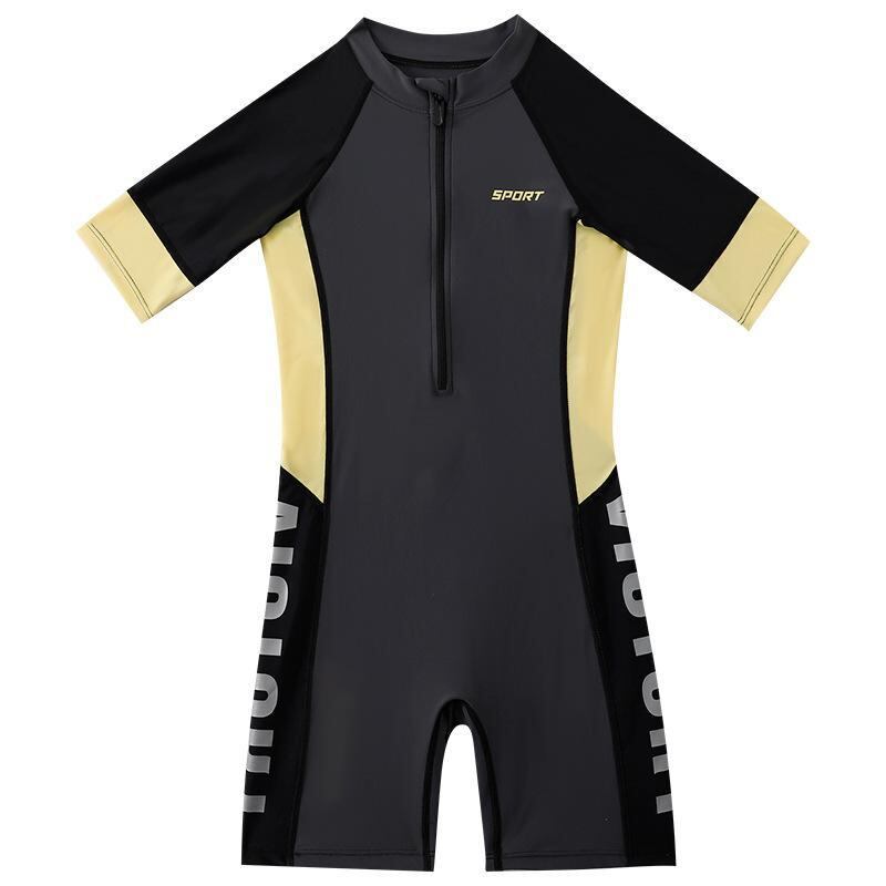 水着 男の子 キッズ 男児 スイムキャップ セット 韓国風 オールインワン 長袖 全身 フロントジップ ワンピース プール 海水浴 マリンスポーツ アウトドア レジャー 高伸縮性 ストレッチ ポリエステル スパンデックス ブラック 春夏