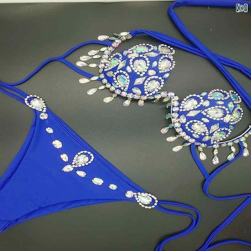 ビキニ 水着 レディース ワイヤー入り ハードカップ ジルコニア装飾 フリンジ スイムウェア 三角スタイル 無地 欧米風 スポーツ プール ビーチ リゾート 夏
