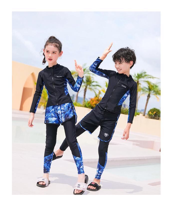 水着 キッズ ジュニア 男の子 女の子 長袖 ラッシュガード セパレート スクール水着 上下セット プール 海水浴 UVカット 速乾 日焼け対策 ナイロン ポリエステル 夏