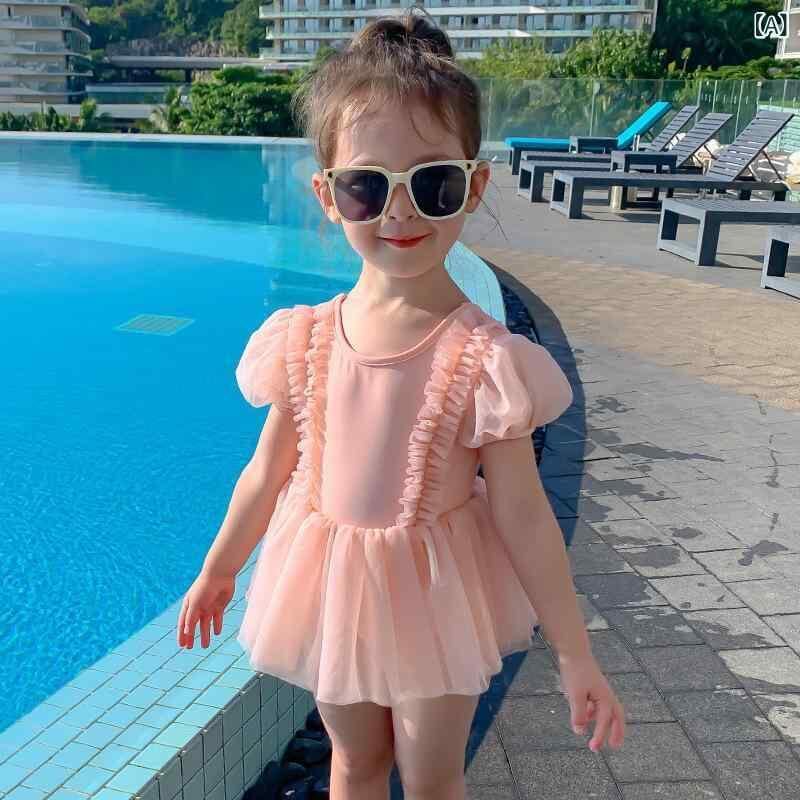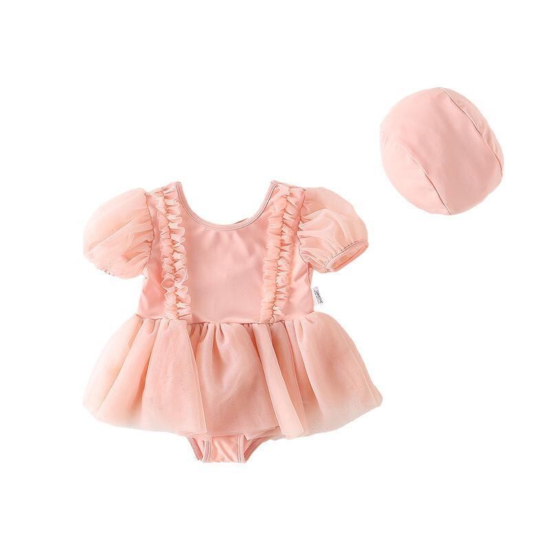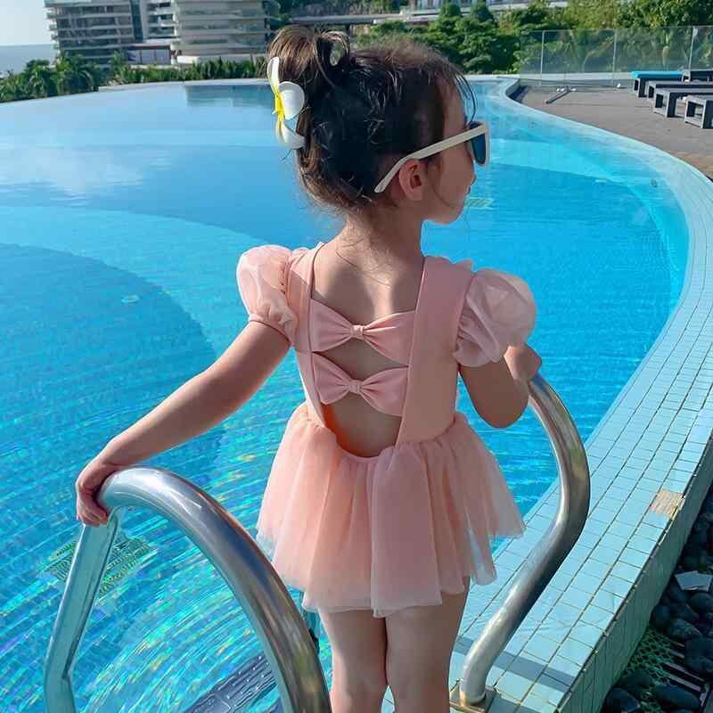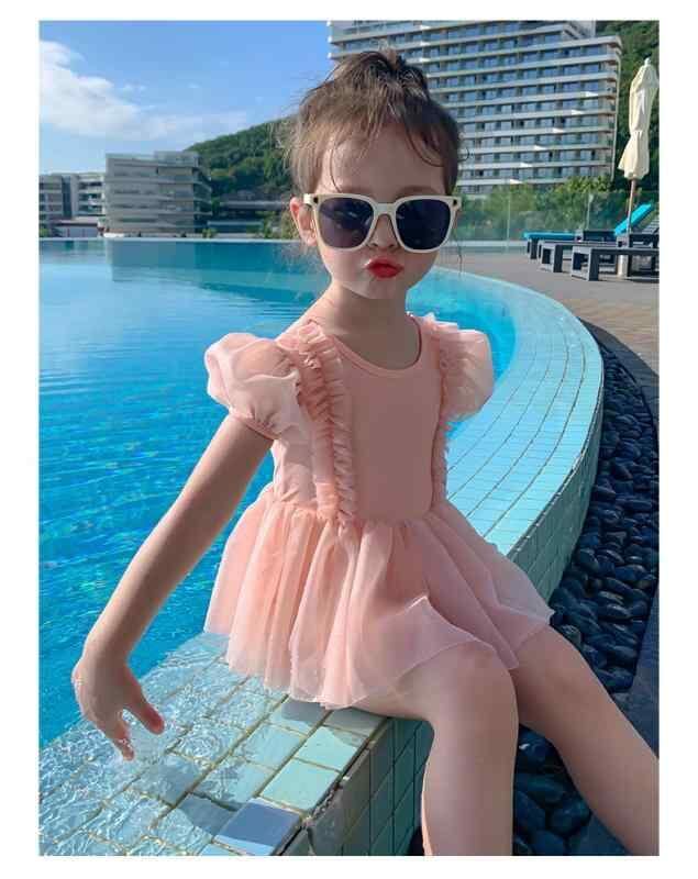 水着 女の子 キッズ かわいい ダブルリボン ワンピース プリンセス スイムウェア リゾート プール 海 ビーチ 水泳 幼児 小学生 ピンク ナイロン ポリエステル 伸縮性 快適