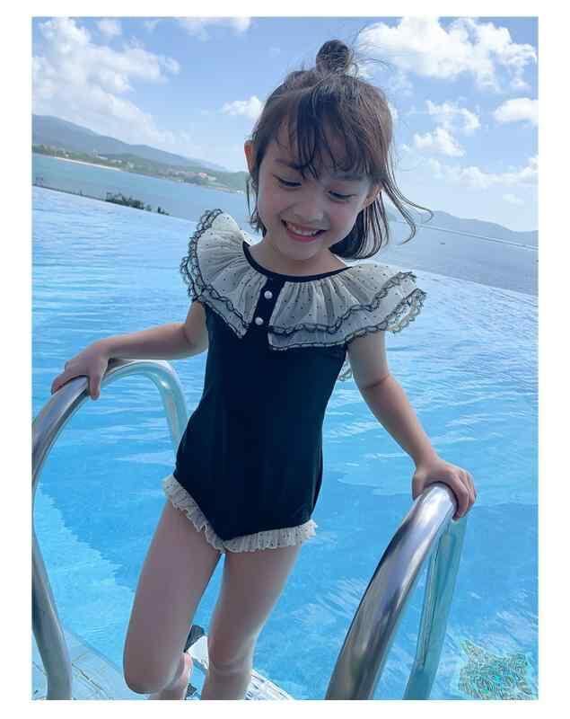 水着 キッズ 女の子 ワンピース フリルデザイン トレンド おしゃれ インフルエンサー 温泉 プール リゾート 夏 サマー ナイロン ポリエステル 速乾 ブラック