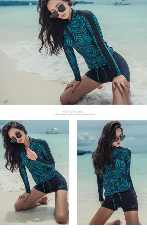水着 レディース スイムウェア 長袖 ロングスリーブ セパレート ツーピース ショートパンツ 体型カバー お腹カバー 細見え スタイルアップ スポーツ 運動用 温泉 プール リゾート 大きいサイズ ゆったり ブラック 黒 春夏