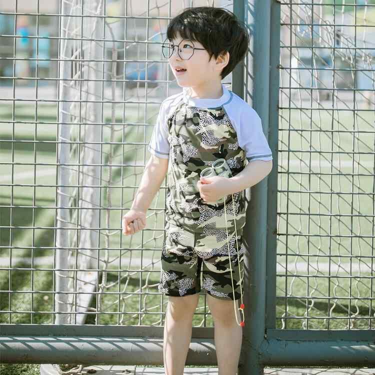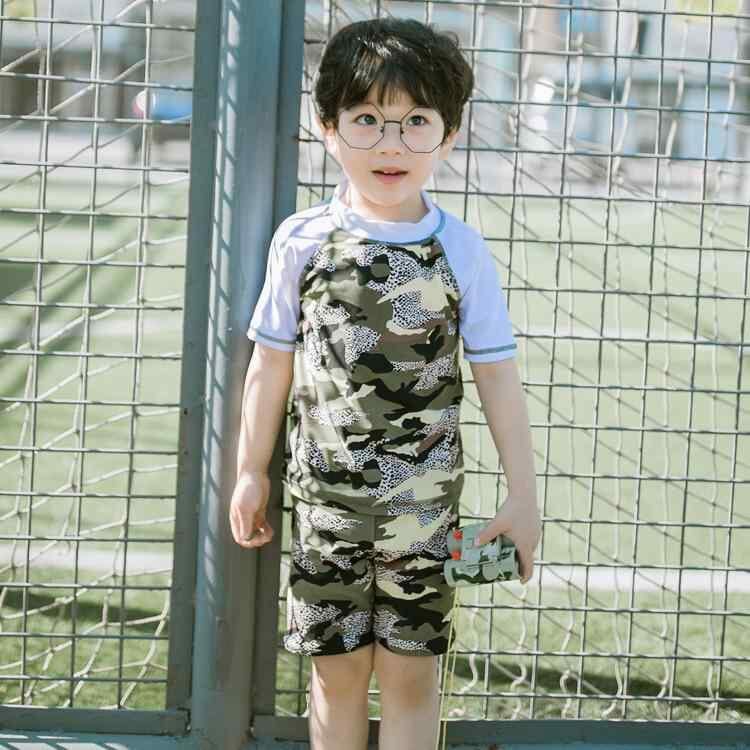 水着 キッズ 男の子 セパレート スイムパンツ セットアップ 迷彩柄 デジタルプリント ポリエステル素材 速乾性 撥水加工 プール 海水浴 水泳用 夏用