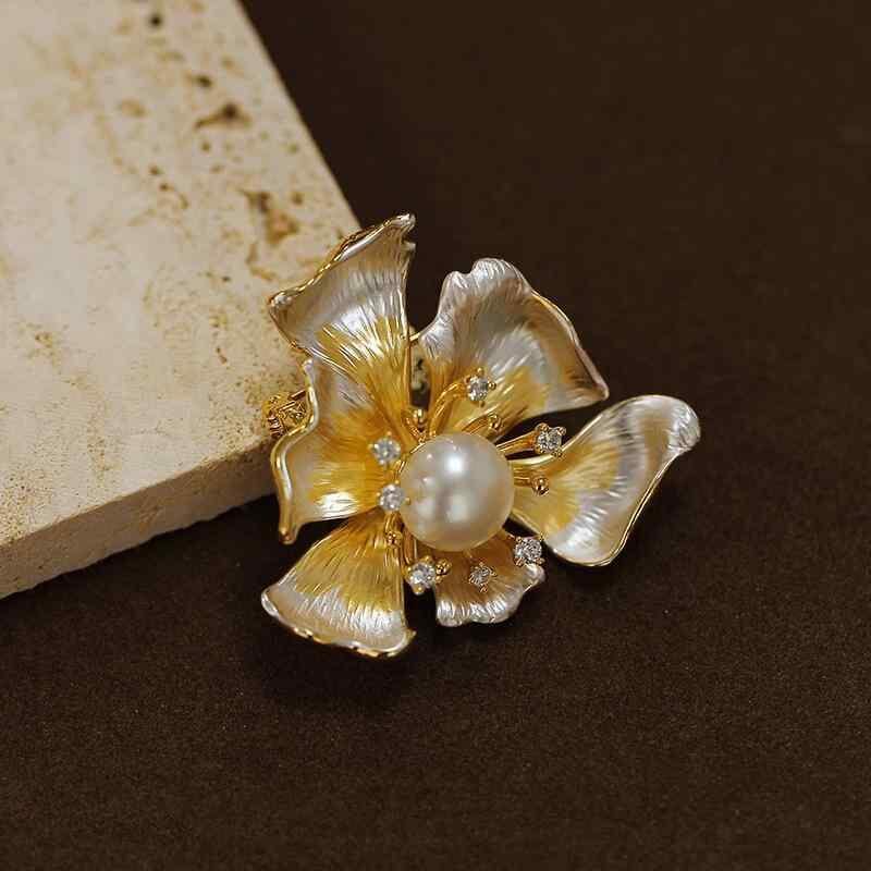ブローチ 淡水パール レディース セレモニー フォーマル 入学式 おしゃれ 胸飾り アンティーク感 贈り物 高級感 女性用 淡水パール ジルコン 六葉花 コサージュ ピン 個性的 独創的 軽やかラグジュアリー ライトラグジュアリー