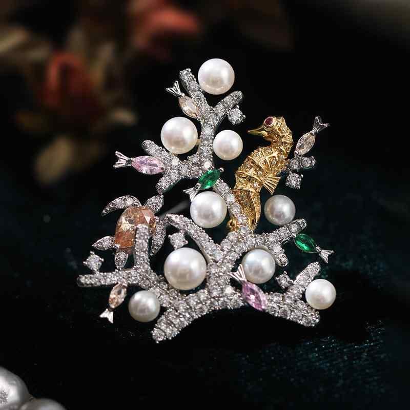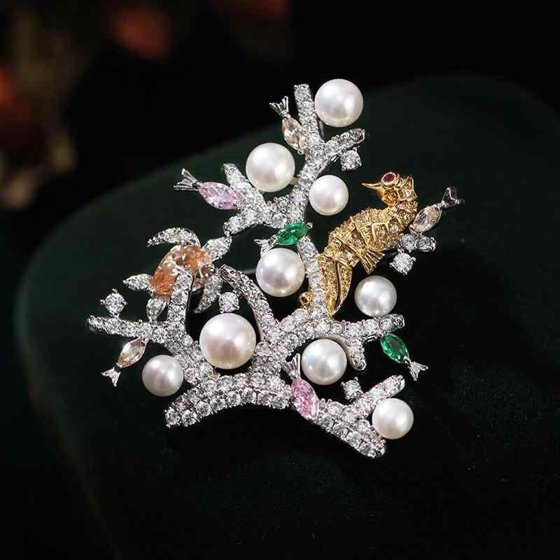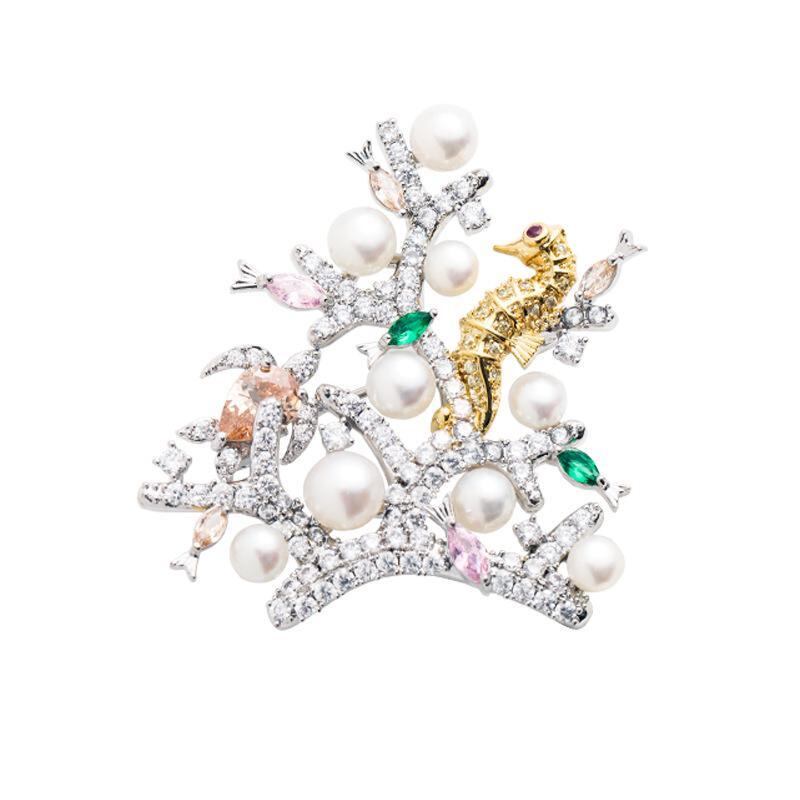 ブローチ レディース サンゴツリー 淡水パール デザイン 個性的 ライトラグジュアリー 高級感 上品 スーツ ジャケットアクセサリー 普段使い オケージョン フォーマル 植物モチーフ