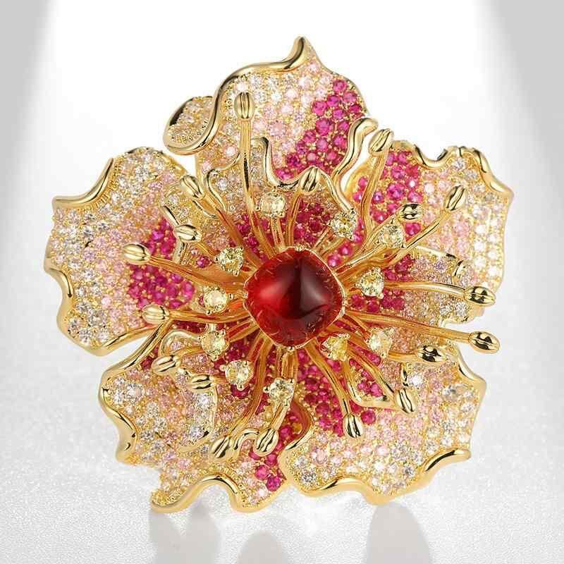 ブローチ レディース 高級感 緻密なデザイン ジルコニア 牡丹 花 フラワー 銅製 宮廷風 エレガント カラフル カルセドニー 上品 フォーマル パーティー 結婚式