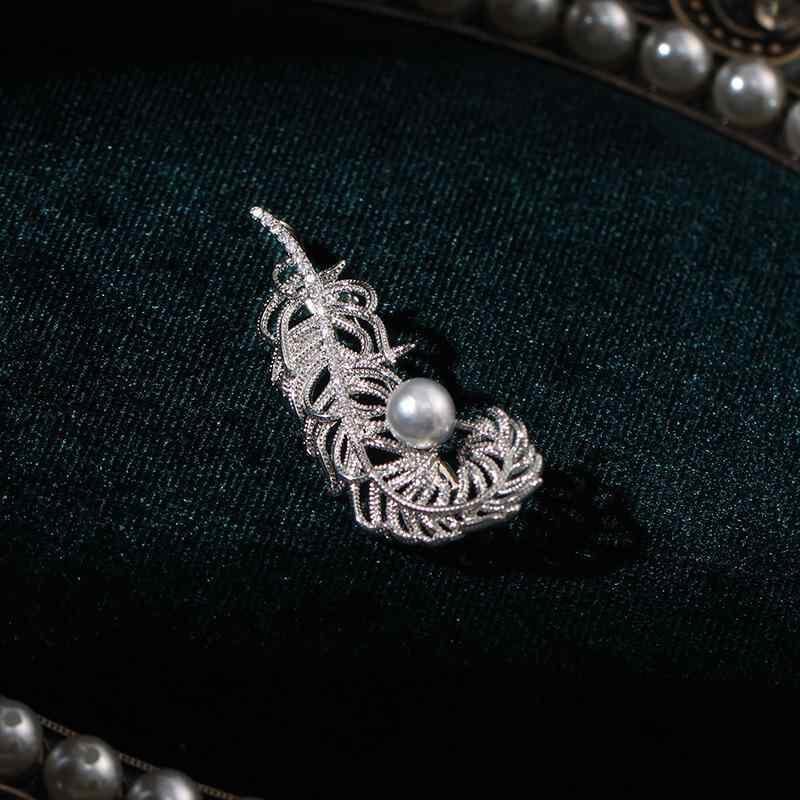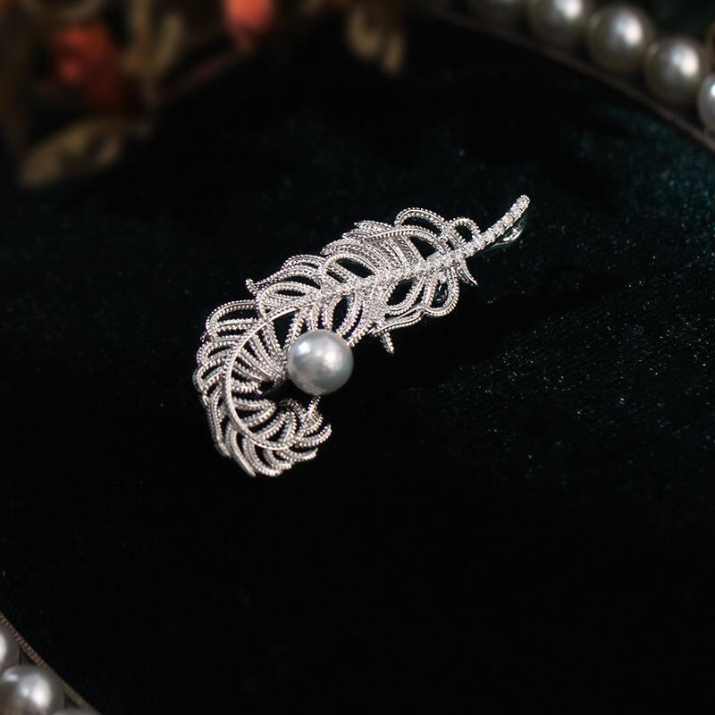 ブローチ 淡水パール レディース セレモニー フォーマル 入学式 おしゃれ 胸飾り 高級感 アクセサリー 個性的 ライトラグジュアリー 上品 エレガント 金メッキ 羽根 フェザー