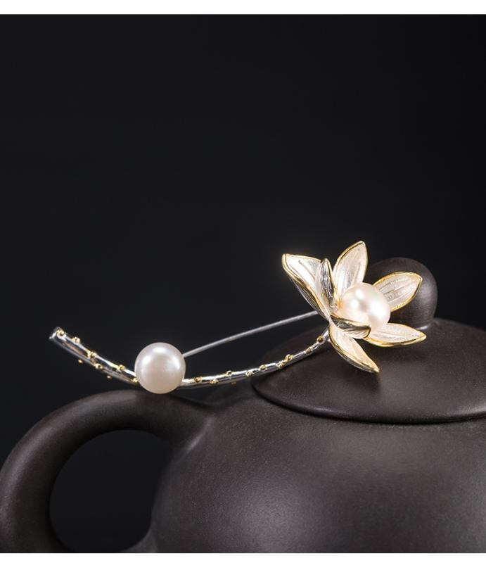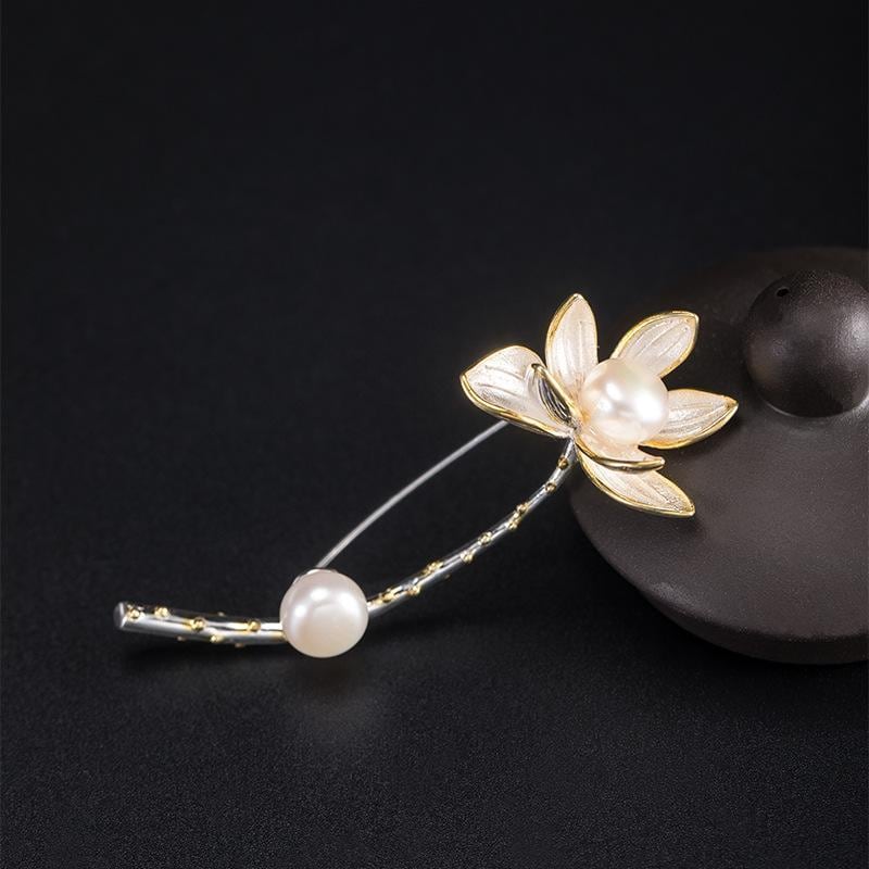ブローチ パール レディース セレモニー コンサート 結婚式 贈り物 おしゃれ 胸飾り 高級感 925シルバー 蓮の花 フラワーモチーフ パール ピン コサージュ 女性用 エレガント 上品 魅惑的 フォーマル スーツ 礼服 洋服 にも