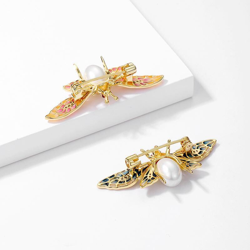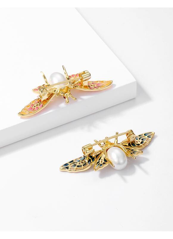 ブローチ レディース S925純銀 パール ミツバチ 七宝焼き 高級感 レジン加工 アニマルモチーフ オリジナルデザイン ピンク系 ブルー系 女性用