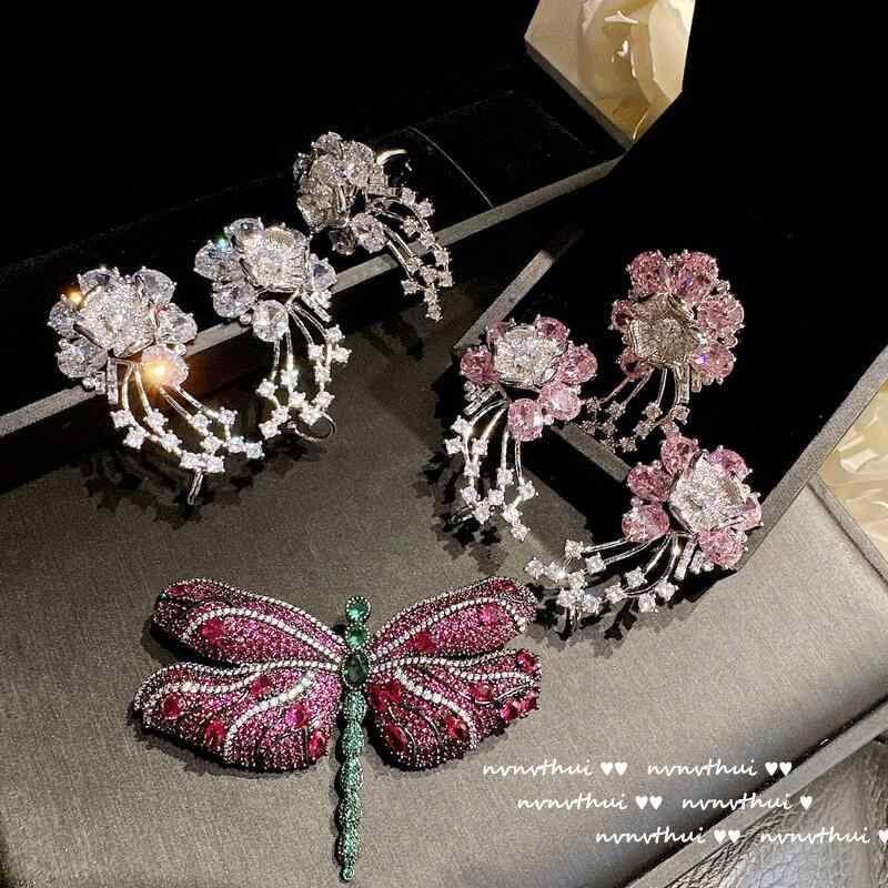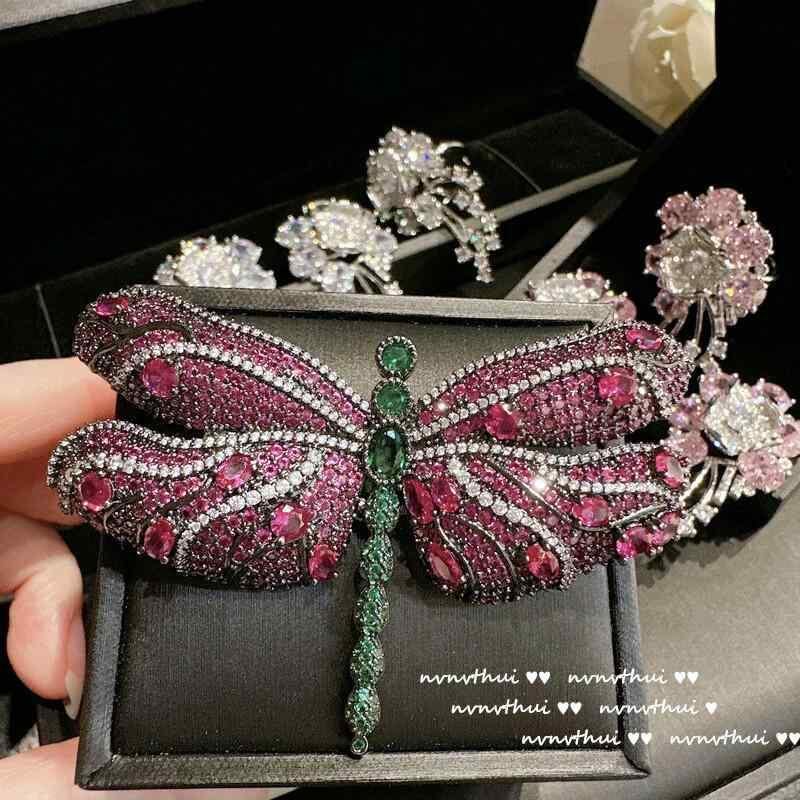 ブローチ レディース トンボ アンティーク調 フレンチレトロ 18K金メッキ ルージュレッド カラーストーン ジルコニア エレガント ゴージャス アニマルモチーフ