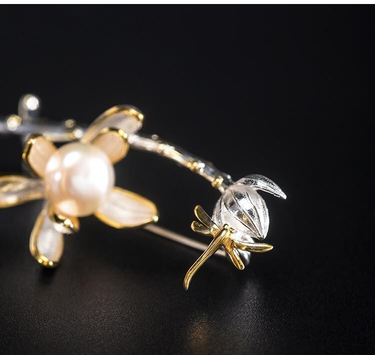 ブローチ パール レディース セレモニー コンサート 結婚式 贈り物 おしゃれ 胸飾り 高級感 シルバー製 個性的な 蓮の新芽 蓮の葉 パール 蜻蛉 トンボ 女性用