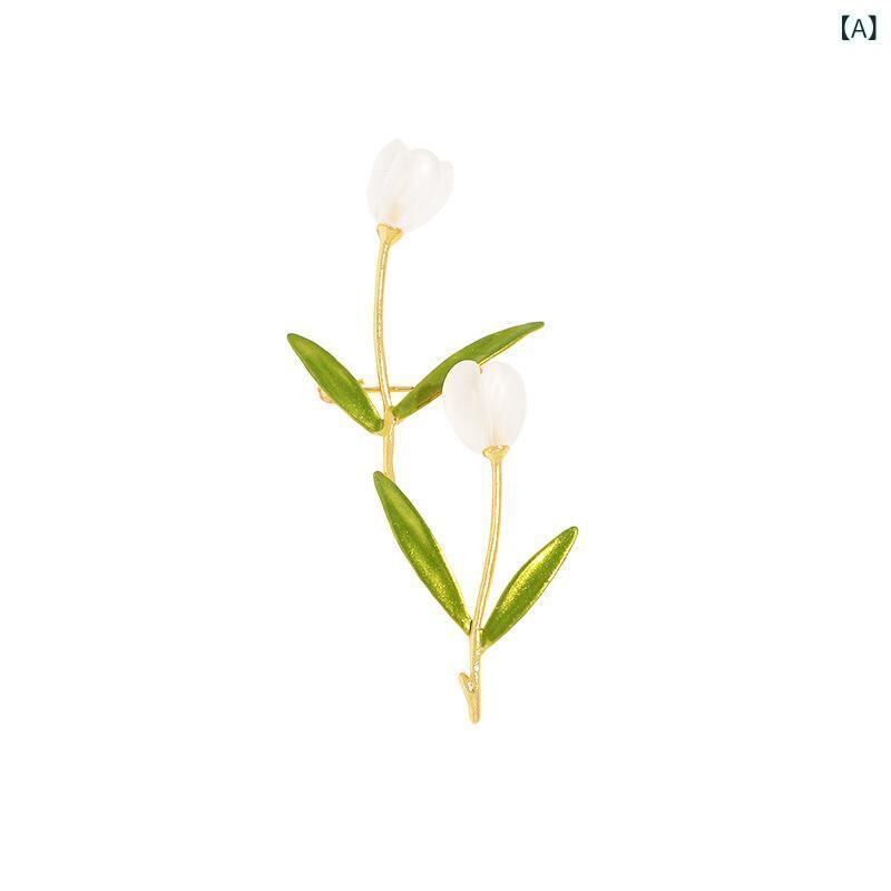 ブローチ レディース 白玉蘭 花モチーフ 露出防止ピン 個性的デザイン 高級感 エレガント トレンド 銅製 フェミニン