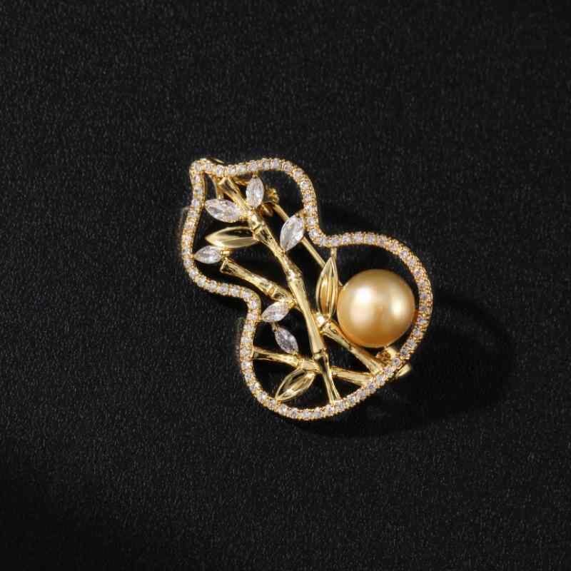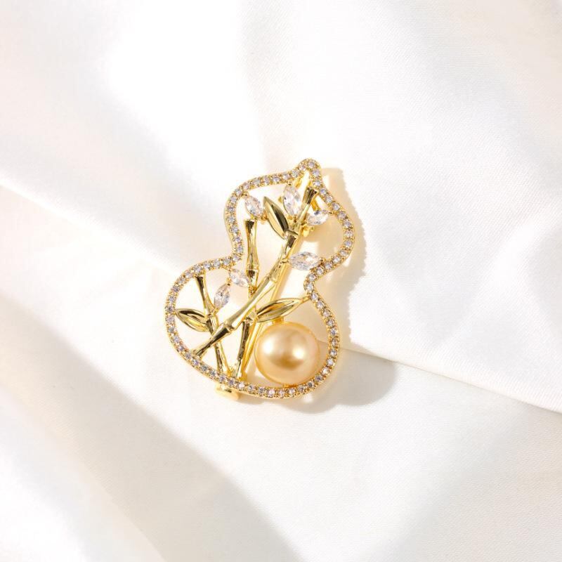 ブローチ パール レディース セレモニー コンサート 結婚式 贈り物 おしゃれ 胸飾り 高級感 和風 金メッキ ジルコン 瓢箪 コサージュ ピン 小さめ 軽め 飾り 個性的 コート アクセサリー