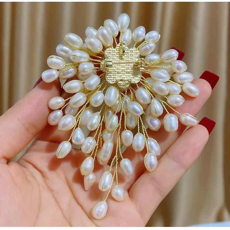 ブローチ 淡水パール レディース セレモニー フォーマル 入学式 おしゃれ 胸飾り 高級感 手編み セーターピン アクセサリー