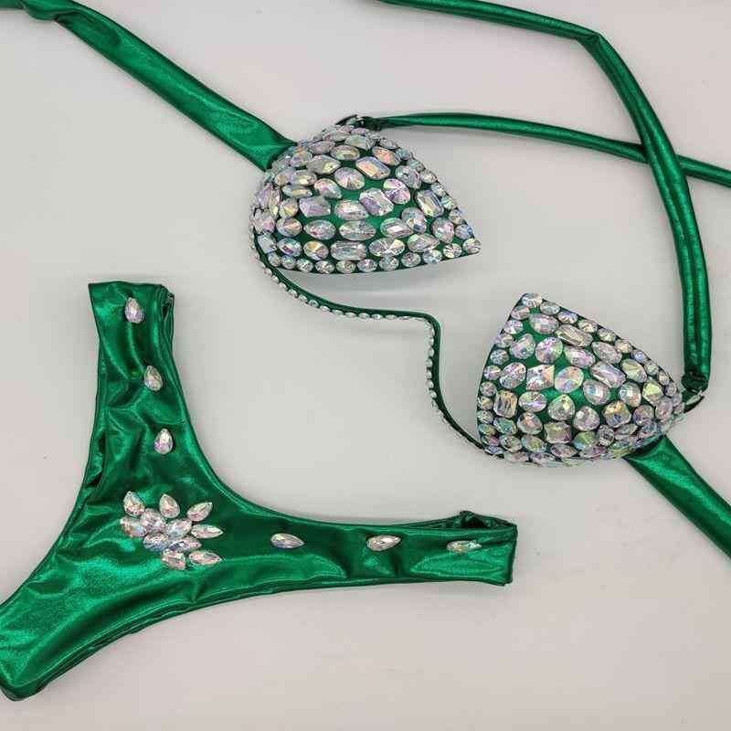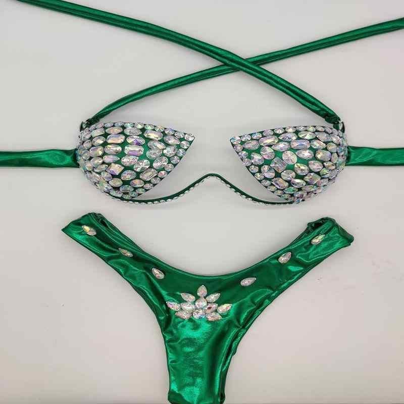 水着 レディース ビキニ 鮮やかカラー ジルコニア装飾 ワイヤー入り パッド付き ナイロン スパンデックス フィットネス プール ビーチ 夏 三角パンツ