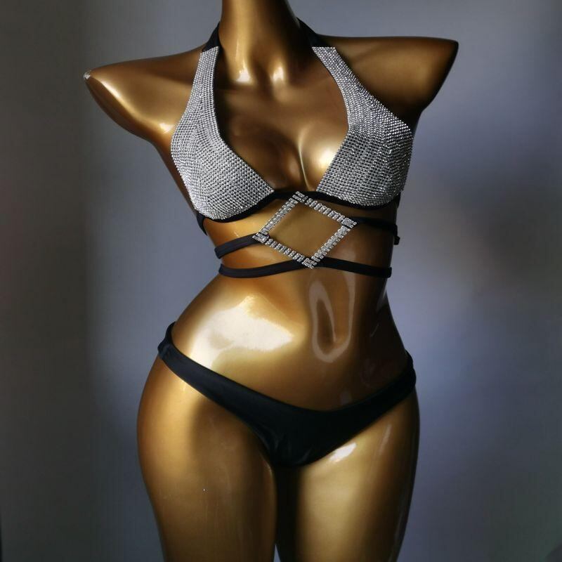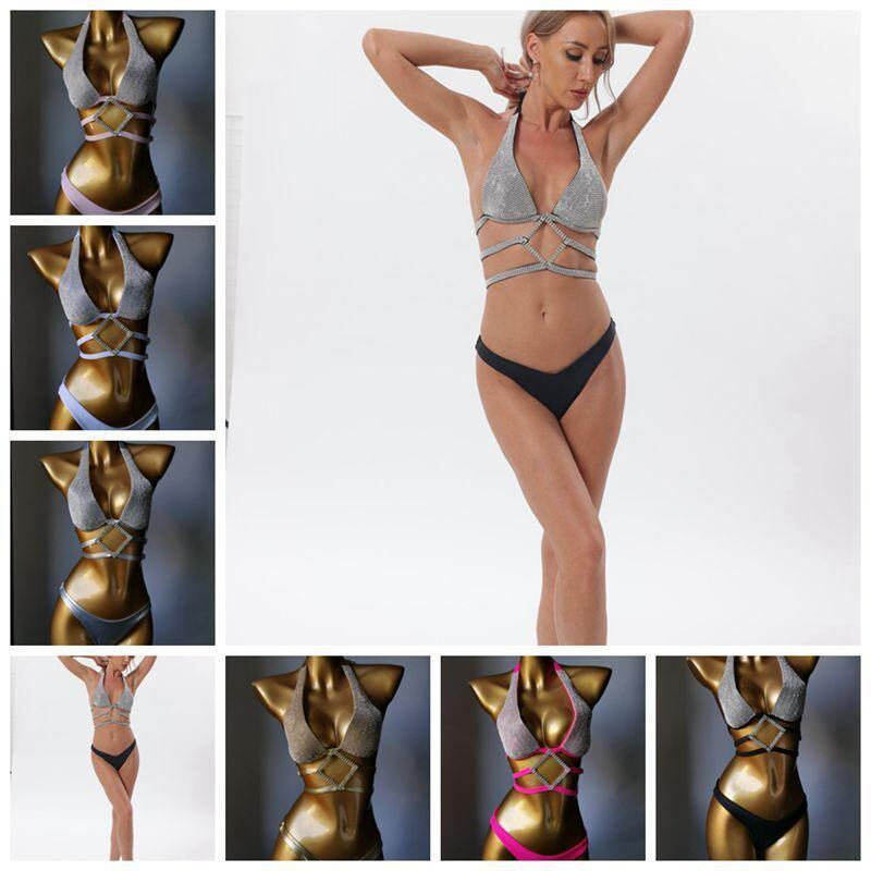 ビキニ レディース ラインストーン セクシー パッド付き ノンワイヤー 高級感 エレガント スイムウェア イベント パーティー ナイトクラブ リゾート ビーチ 水泳 スポーツ ナイロン ストレッチ ゴールド シルバー ブラック ピンク ローズ ホワイト