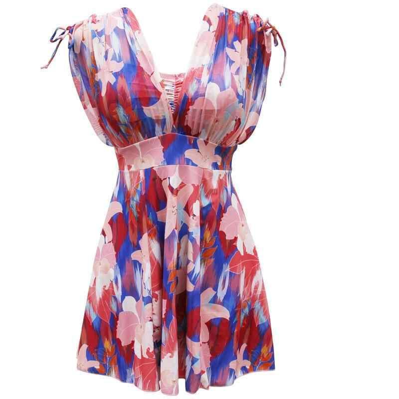 水着 レディース 大きいサイズ スカート セパレート 花柄 二の腕カバー 袖付き 細見え 体型カバー ボックスパンツ プール 海 リゾート ビーチ ポリエステル 春夏