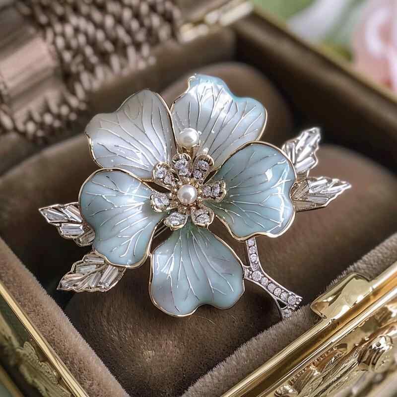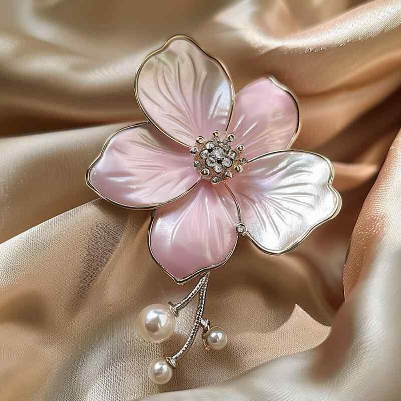 ブローチ レディース 女性用 上品 エレガント 山茱萸 花 フラワーモチーフ グラデーション エナメル 七宝 高級感 銅製 電気メッキ加工 結婚式 入学式 卒業式 フォーマル パーティー 普段使い プレゼント アクセサリー