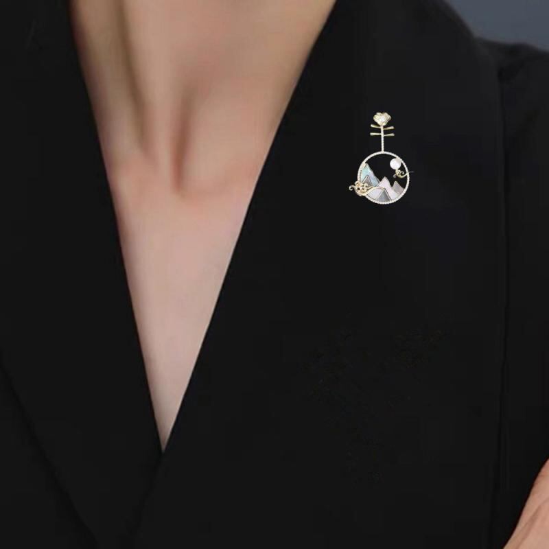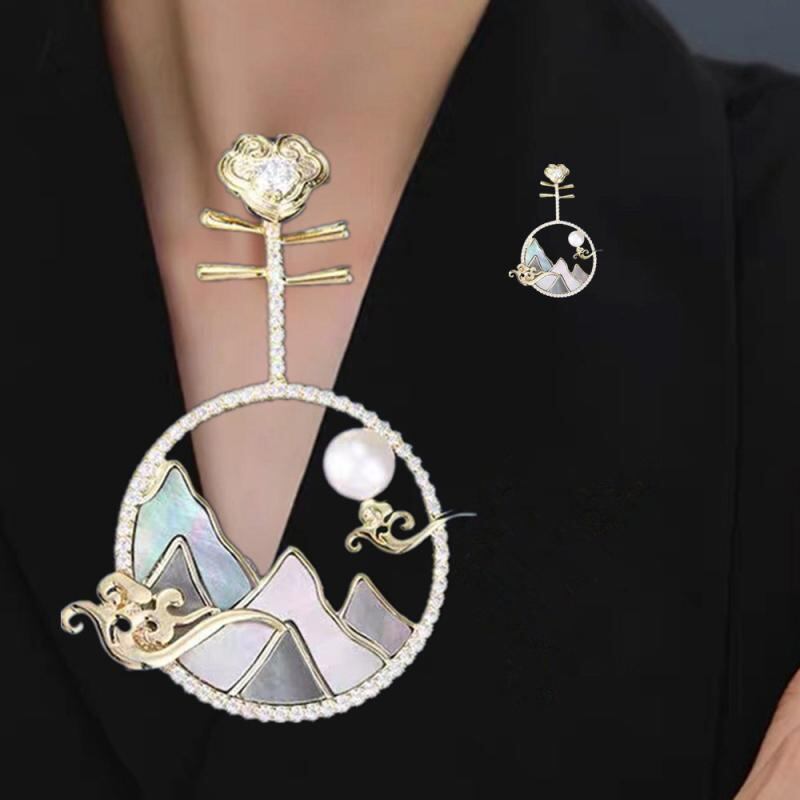 胸針 レディース 中国風 レトロ 琵琶 貝殻 象嵌 高級感 個性的 芸術的 銅製 ゴールド ブローチ アクセサリー ファッション小物 贈り物