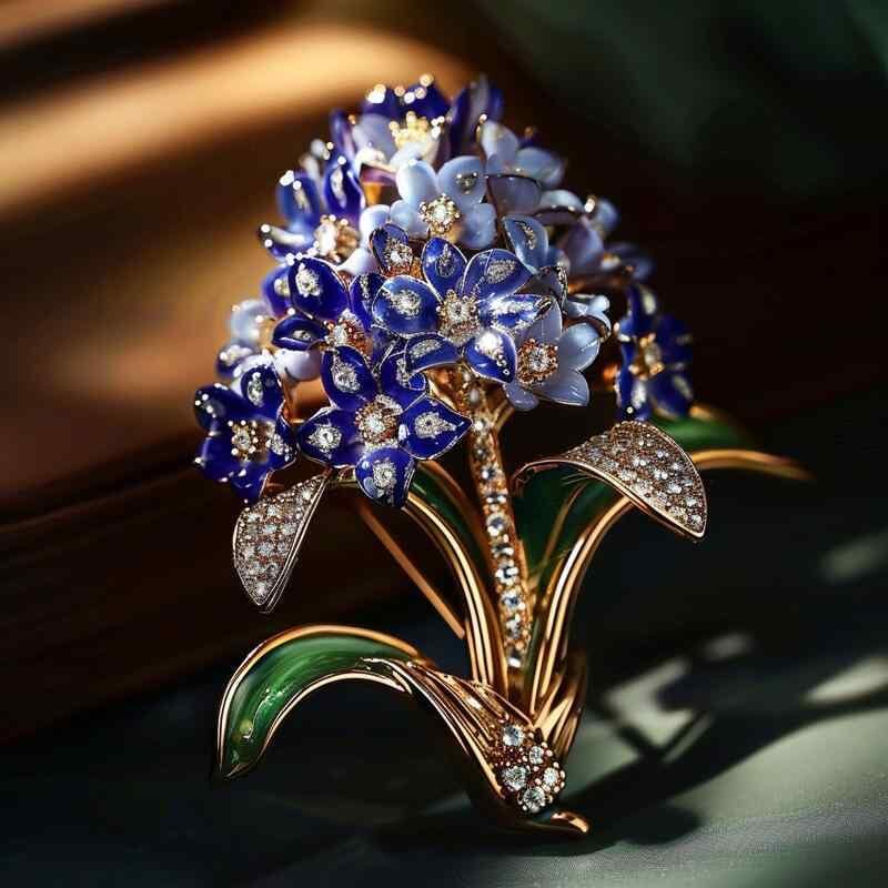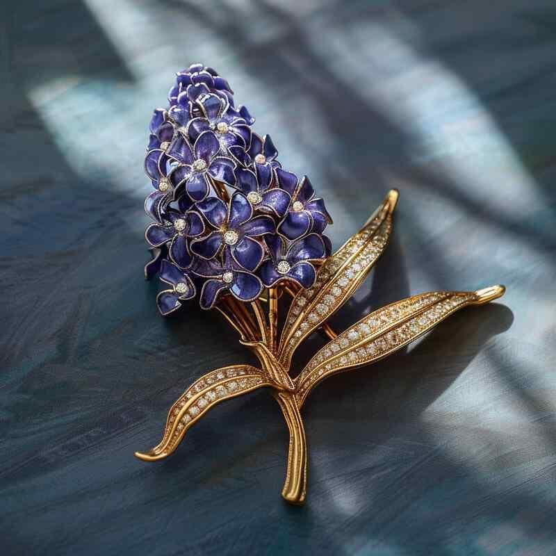 ブローチ レディース ヴィンテージ風 エナメル ヒヤシンス アジサイ 花 銅製 電気メッキ加工 コントラストカラー 植物モチーフ 花柄 高級感 オリジナルデザイン