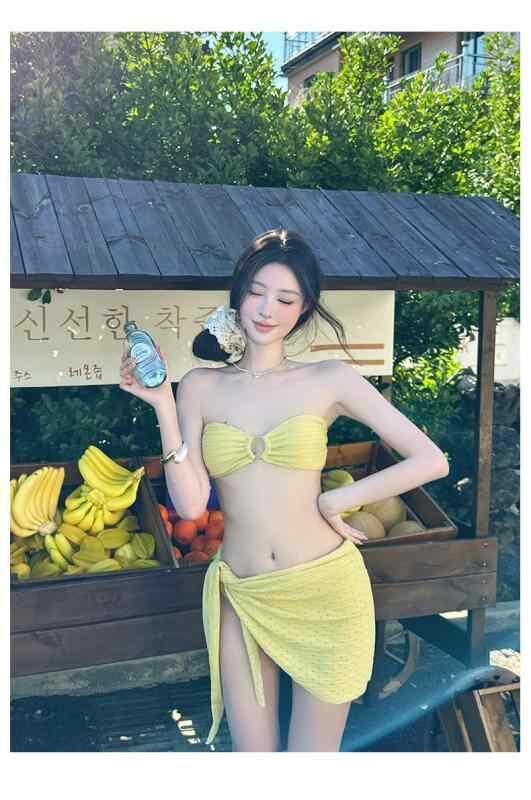 水着 レディース ビキニ 3点セット チューブトップ 温泉 リゾート セクシー 無地 接触冷感 伸縮性