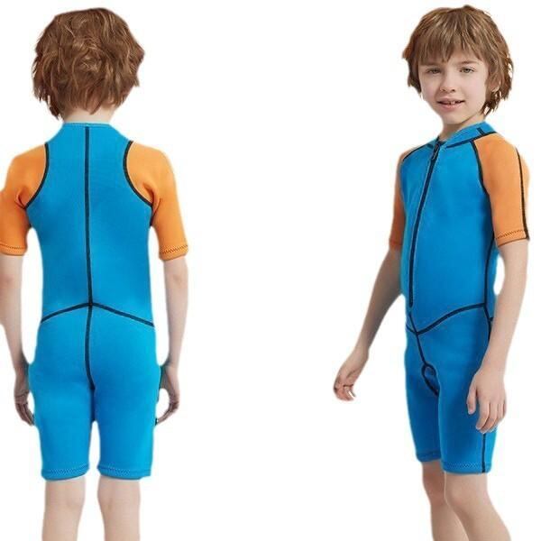 ウェットスーツ キッズ ベビー 子供用 男女兼用 2mm 厚手 ネオプレン ナイロン素材 防寒 保温 半袖 ショートパンツ スイムウェア マリンスポーツ 水遊び オレンジレッド