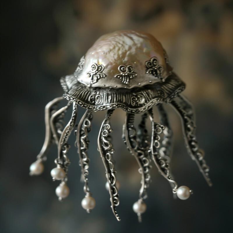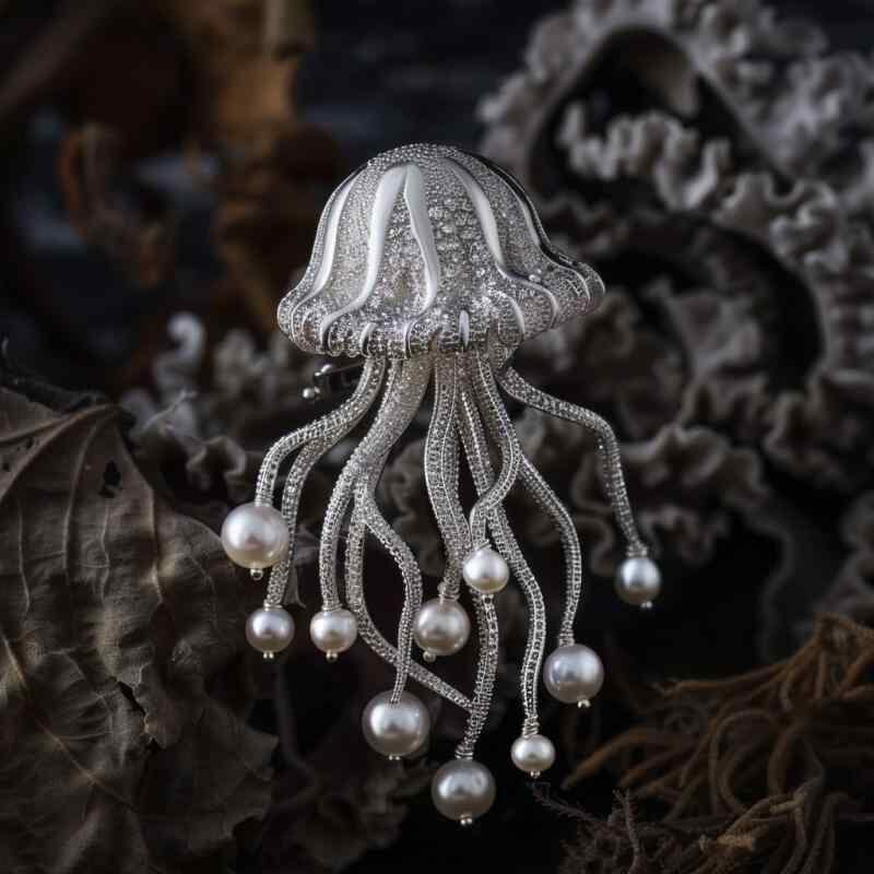 ブローチ レディース 淡水パール 水母 モチーフ 銅製 アクセサリー ファッション小物 電気メッキ加工 水族館 海洋生物 エレガント 上品