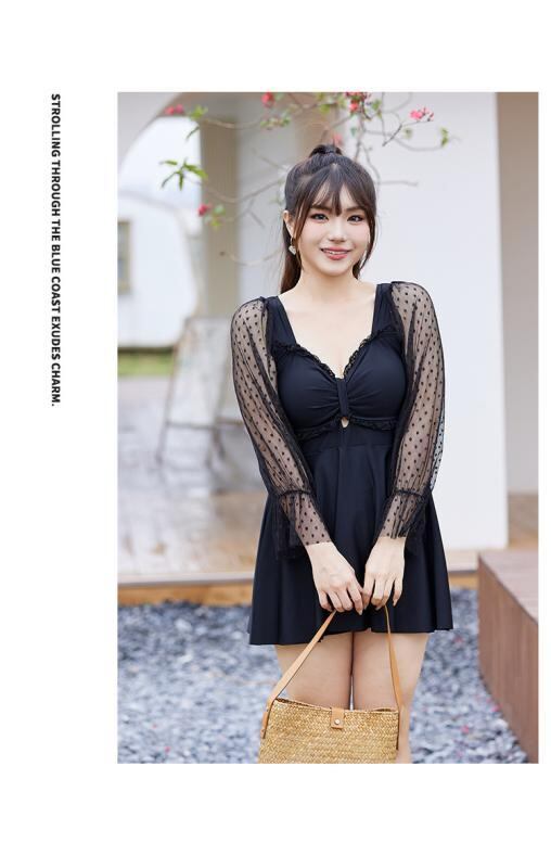 水着 レディース 大きいサイズ ワンピース 体型カバー 着痩せ スカート セクシー レース 黒 長袖 温泉 リゾート プール スイムウェア 春夏