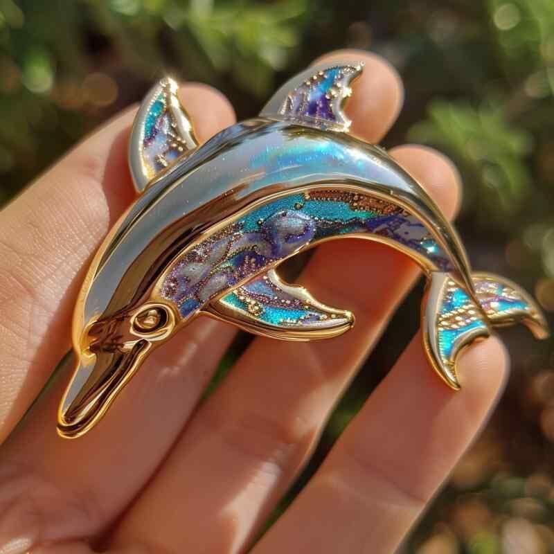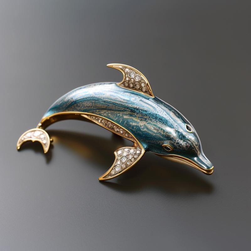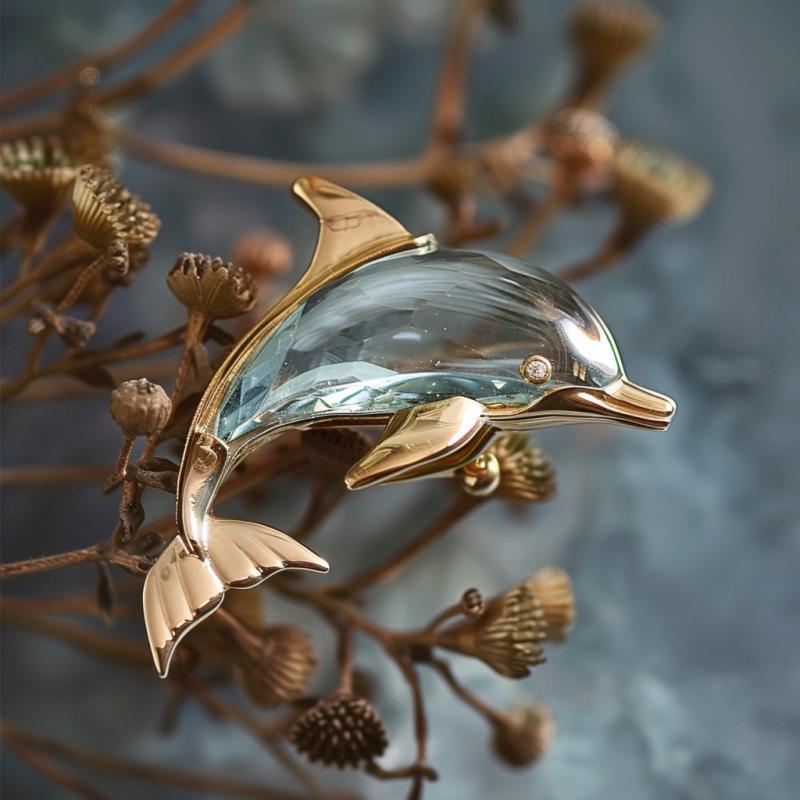 ブローチ レディース イルカ 海洋生物 高級感 光沢 クリスタル 水族館モチーフ ペンダント 銅製 電気メッキ加工 オリジナルデザイン 上品 エレガント きらきら 立体 動物モチーフ 普段使い パーティー フォーマル