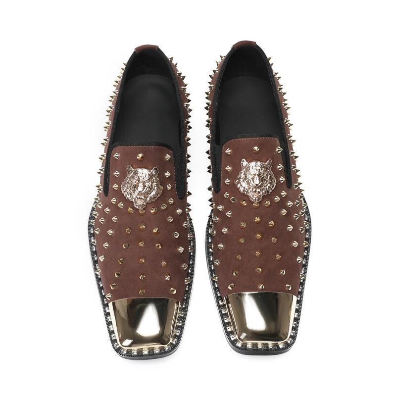 紳士靴 シューズ メンズ 牛革 ラインストーン ローカット ポインテッドトゥ カジュアル ストリート パンク風 通気性 スエード調 シークレットヒール ゴム底 ブラウン