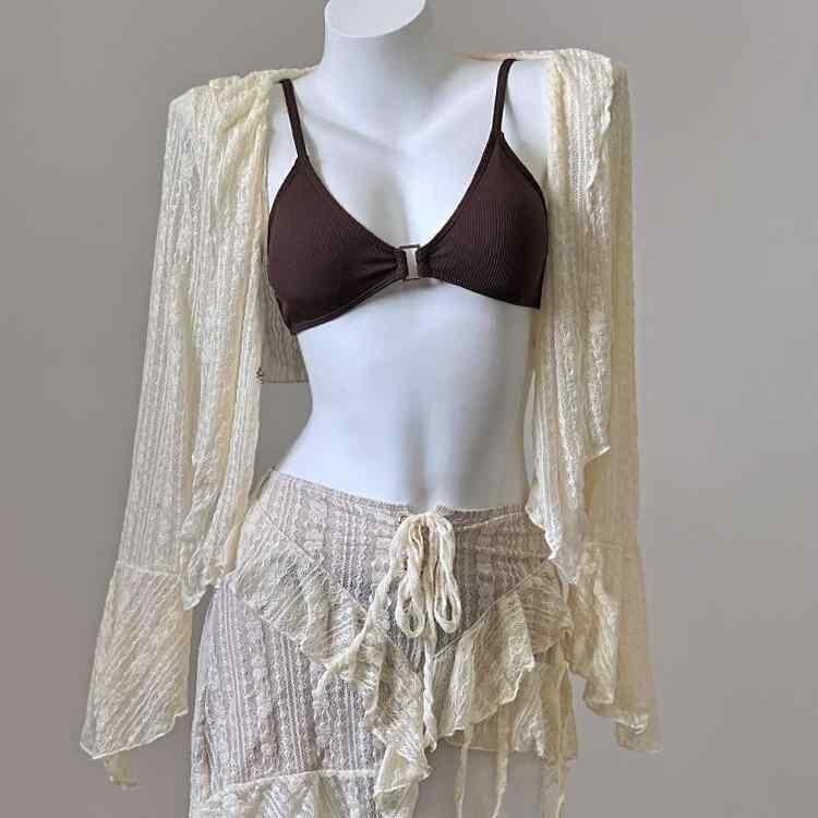 水着 レディース ボヘミアン セパレート ビキニ レース ヘルシーセクシー ビーチ リゾート 海水浴 プール 旅行 スタイルアップ おしゃれ アプリコットカラー 三角ショーツ 春夏