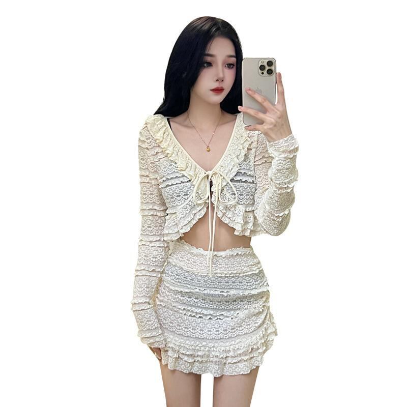 水着 レディース ビキニ 高級感 セパレート 4点セット 体型カバー お腹カバー スタイルアップ 長袖 パッド入り ノンワイヤー 高伸縮 ポリエステル リゾート ビーチ プール 春夏 ベージュ ブラウン セクシー