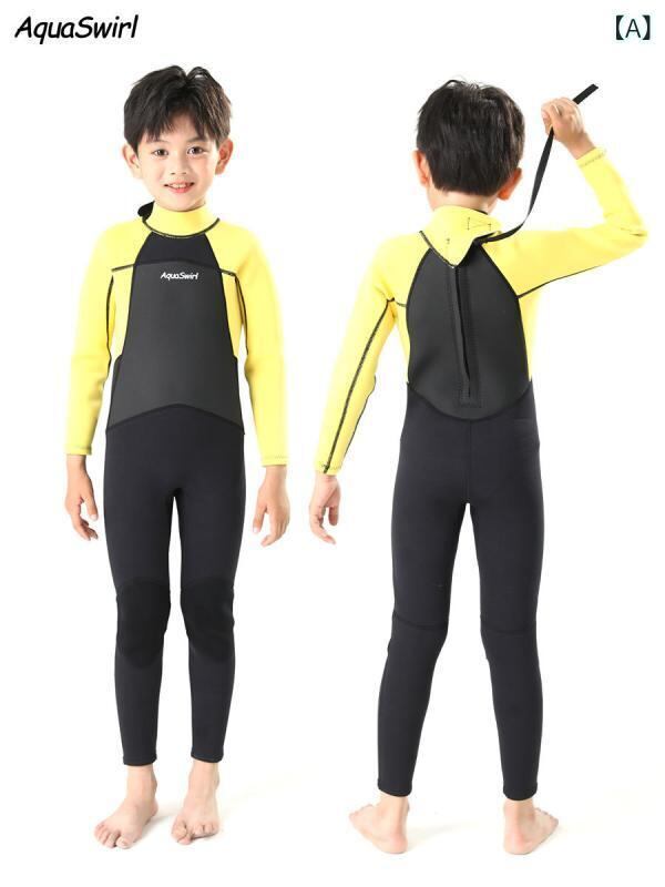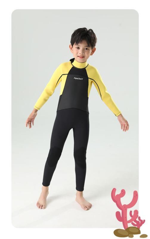ウェットスーツ キッズ 男の子 女の子 2.5mm 長袖 長ズボン 全身 ワンピース ネオプレン UVカット 速乾 スイムウェア 水着 マリンスポーツ プール 海水浴 春夏 イエロー