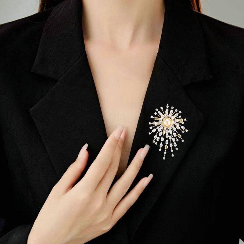 ブローチ レディース ゴールド 花火モチーフ ジルコニア マイクロパヴェ 高級感 繊細 上品 デザイン性 エレガント スーツ ジャケット フォーマル カジュアル 装飾 多用途 胸飾り