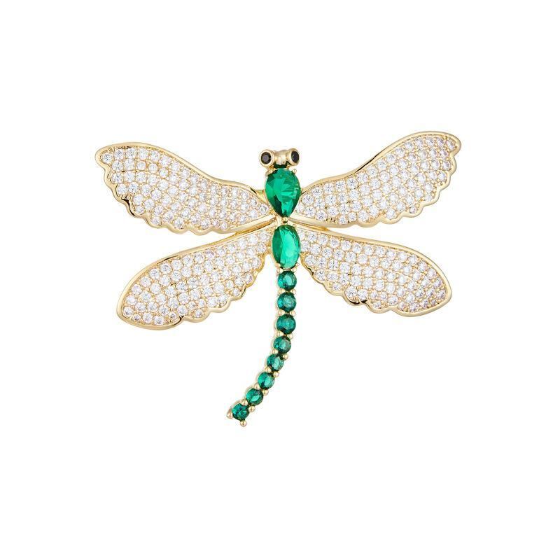 ブローチ レディース 女性用 トンボモチーフ 昆虫デザイン マイクロパヴェ ジルコニア製 ライトラグジュアリー 個性的 高級感 上品 エレガント 銅製 秋冬 ファッション おしゃれ アクセサリー