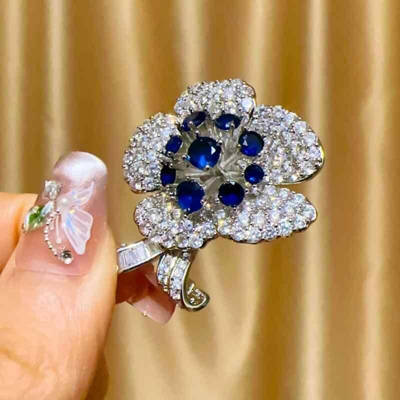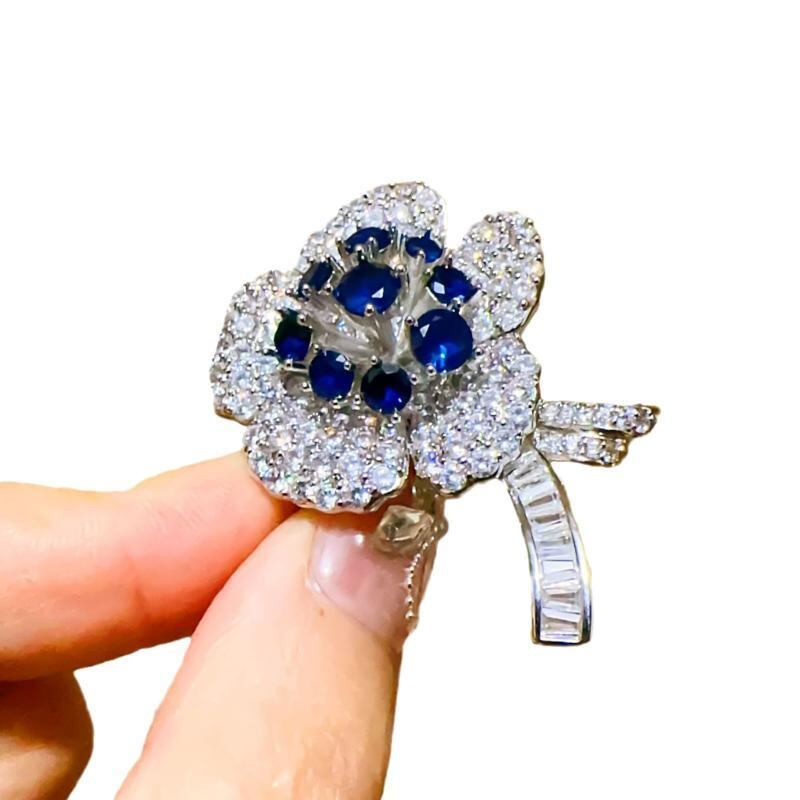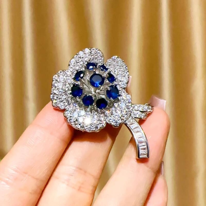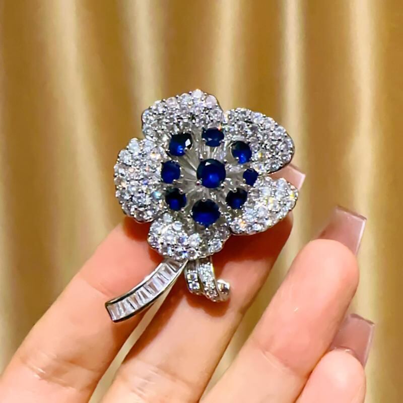 ブローチ 男女兼用 韓国風 高級感 重厚感 豪華 上品 エレガント ジルコニア フラワーモチーフ 華やか キラキラ輝く 銅製 電気メッキ加工 胸元カバー ズレ防止 フォーマル 結婚式 パーティー イベント 秋冬